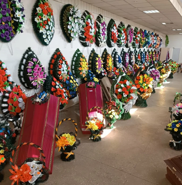 Предлагаем широкий спектр принадлежностей, необходимых для погребения умершего и проведения всех обрядов: • Гробы, венки, кресты, корзинки, таблички, одежда и все товары, необходимые для похорон.