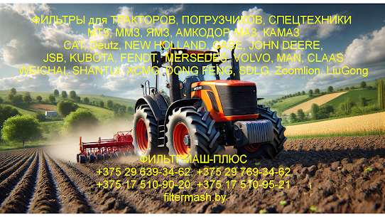 Фильтры для тракторов. Фильтры для погрузчиков. Фильтры для спецтехники. Фильтры для грузовиков. Caterpillar. Deutz. New holland. Case. Jonh deere. Linde. МТЗ. ММЗ. ЯМЗ. Амкодор. МАЗ. КАМАЗ. Гомсельмаш. Ростсельмаш. Белаз. Jsb. Kubota. Fend. Komatsu. Mersedes. Volvo. Man. Daf. Iveco. Skania. Cummins. Bobcat. Terex. Hitachi. Perkins. Palfinger. Vogele. Weichai. Shantui. Xcmg. Dong feng. Sdlg. Zoomlion. Liugong. Lonking. Lovol. Changlin. Sunward. Sem. Lgce. Runmax. Yuchai. Sany. Jac. Shacman. Sinotruk. Shaanxi. Faw. Howo. Foton. Jmc.Beifang. Baw. Camc. Hongyan. Shehwa. Cukurova. Hidromek. TCM. JAC. Фильтры для сельхозтехники оптом и в розницу, для кормораздатчиков, косилкок, косилок посевных агрегатов пресс-подборщиков, посевной, уборочной, почвообрабатывающей, кормоготовительной кормозаготовительной техники и техники по внесению удобрений. Фильтры для манипуляторов. Подъемников. Погрузчиков. Фронтальных погрузчиков. Экскаваторов. Катков. Бетононасосов. Дорожных фрез. Автокранов. Самосвалов. Тягачей. Грузовиков. Асфальтоукладчики. Бульдозеров. Телескопических вилочных погрузчиков. Буровых установок. Лесной техники. Харвестеров. Форвардеров. Коммунальной техники. Строительной техники. Средств малой механизации. Промышленного оборудования. Прямые поставки заводов производителей. Поможем с подбором фильтров. Импортные и отечественные масла, смазки для техники. 5W-30, 5W40,10W40,15W40, М10Г2К, М10ДМ МГЕ 32, 46, HLP, HVLP, 80W90 GL-5, И-20, Масло Марки А, Универсальные масла.