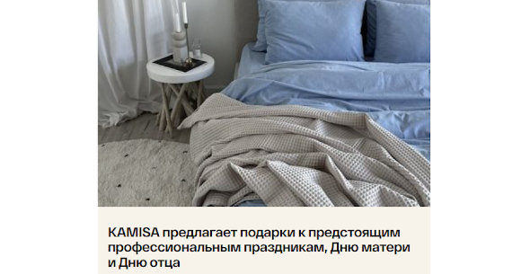 🛏️ Компания «КАМИСА» предлагает идеальные подарки к профессиональным праздникам, Дню матери и Дню отца. В нашем ассортименте — комплекты махровых полотенец, наматрацники, пледы, одеяла, подушки и постельное белье, которые станут практичным и приятным сюрпризом для ваших близких. Все товары отличаются высоким качеством, мягкостью и долговечностью, создавая атмосферу уюта и заботы. Порадуйте себя и родных — выберите полезные текстильные подарки, которые подчеркнут ваше внимание и любовь. KAMISA® — это комфорт, стиль и забота в каждой детали. Успейте приобрести подарки по выгодным ценам и сделайте праздник особенным! #текстильдлядома