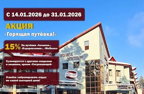 Санаторий «Ружанский» в январе предоставляет приятный бонус — 15% скидка на путёвки «Лечение», «Оздоровление» и «Wellness» при заезде с 14 по 31 января 2026 года.